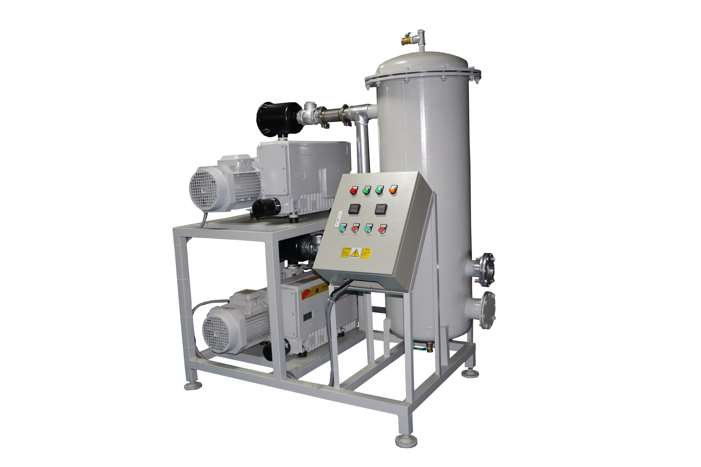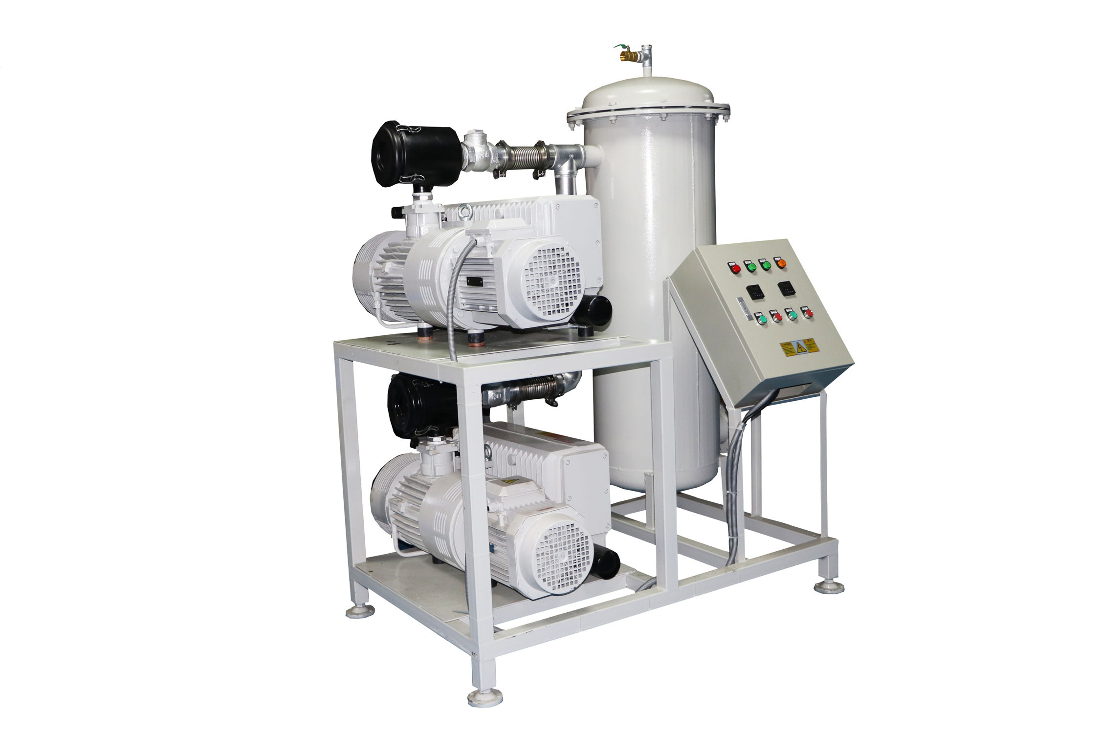 移動式真空負壓站一般包含真空緩沖罐、真空泵、控制制箱、冷卻卻器、真空附件、真空度報警系統;該系列負壓站包含兩種類型,即開放式真空負壓站和封閉式真空負壓站,客戶使用環境良好,操作簡單,成本要求嚴格,則可做開放式真空負壓站;客戶使用環境惡劣,有大量粉塵,可凝性氣體,腐蝕性氣體等環境,則做成封閉式。